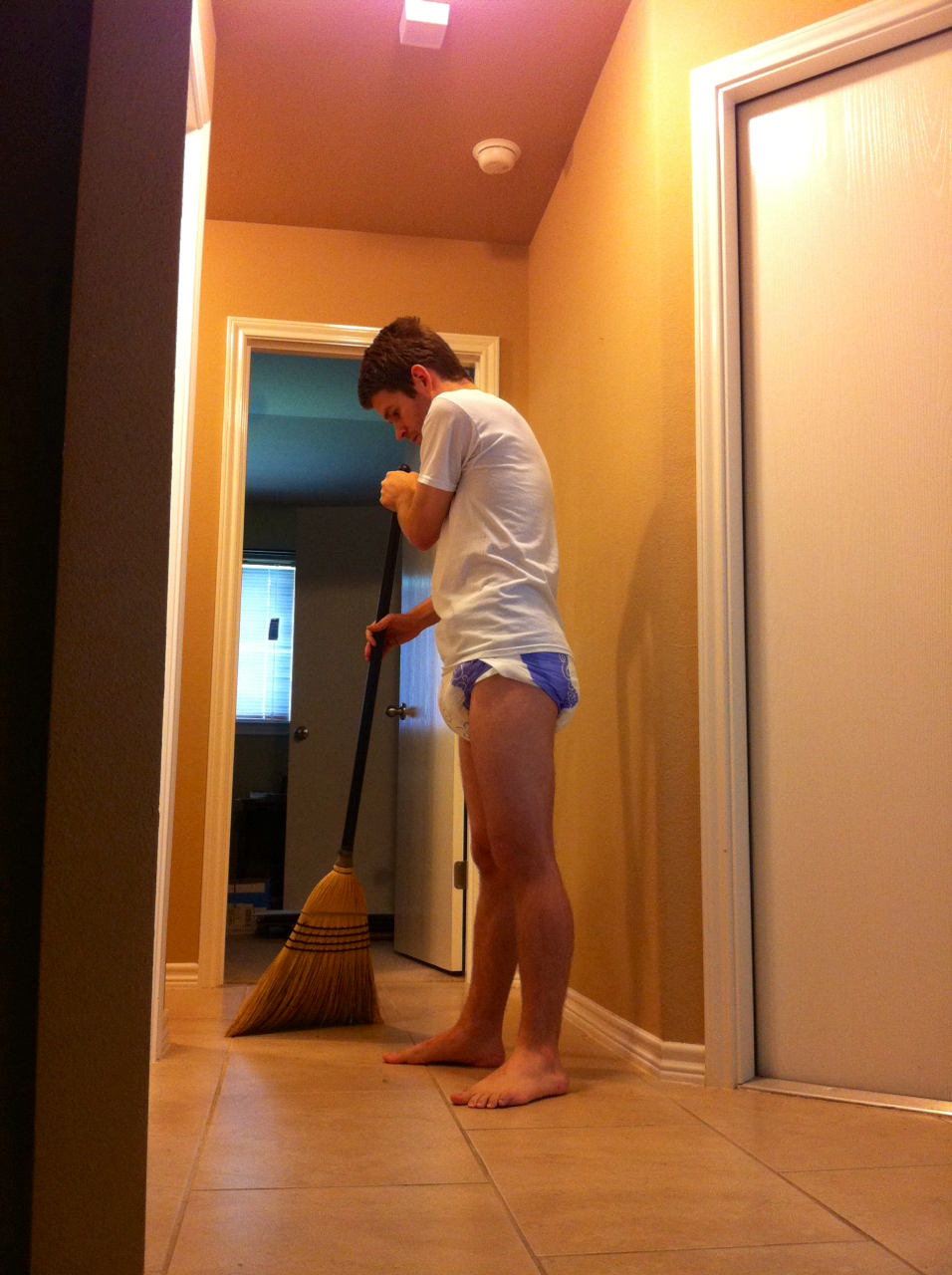 The final aspect i’m going to talk about with regard to nappies is the way in which they allow a slave to focus more on serving. It no longer has to stop to pay a visit to the toilet and can used the time it saves to focusing on the task in hand. Again there is a psycological factor. Wearing a nappy says that Master is of course more important that the slave being able to take toilet breaks. At first I found I still had to stop and stand still to piss, but this was trained out of me and i was able to go wherever and whatever i was doing. Downsides are that the slave is still in control of where and when it pisses so it still can not focus completely on Master. One way round this is to get it to ask for Master’s permission, but this will counteract any time savings that could be gained and may inconvenience Master.